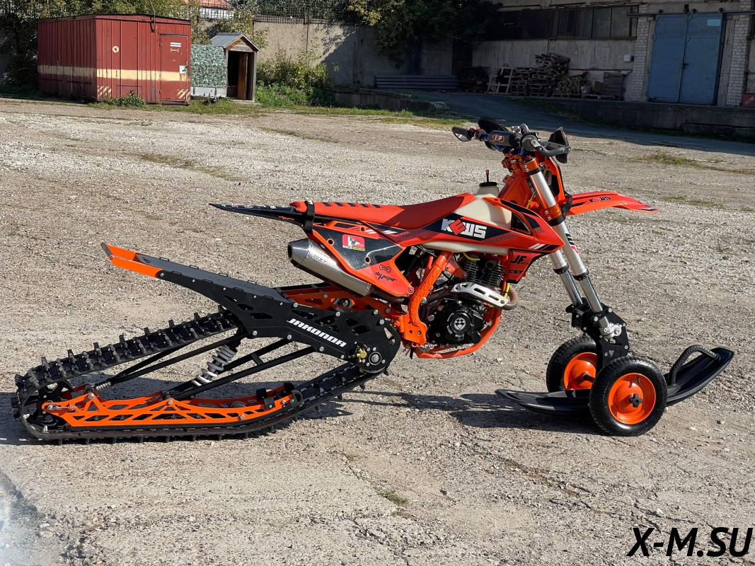 JAKONDА 123 от Snowbike — универсальный гусеничный комплект для внедорожных мотоциклов. Гусеничный мотоцикл (СНОУБАЙК) это, по сути, одноколейный снегоход. Вы получаете возможность продлить мото...