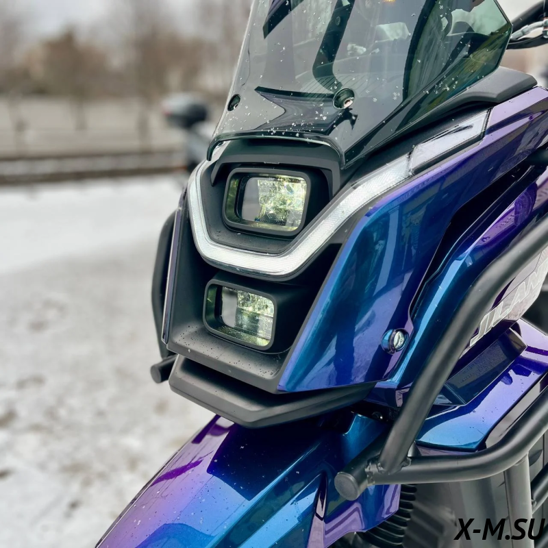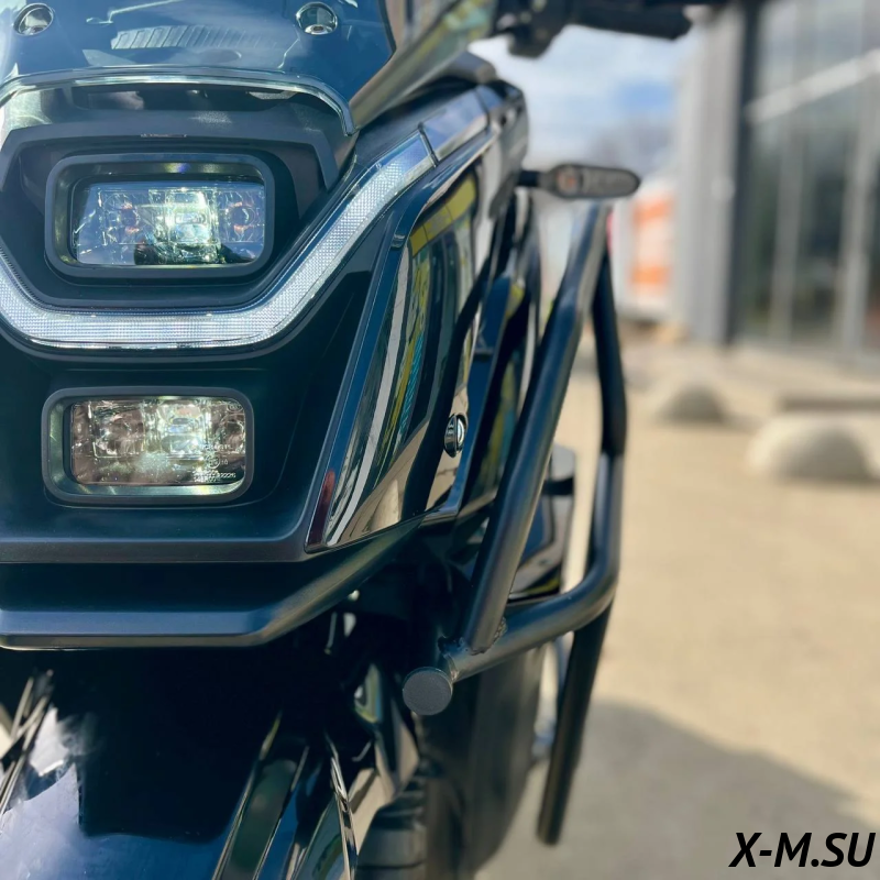 Большой комфортный скутер с внедорожной резиной, отличается от старой модели только футуристически дизайном, где ДХО между двумя фарами в виде моно-бровь. Комплектация: - Передние дуги - Электронный щиток приборов - ЛЭД оптика - Кофр - Держатель для телефона - Шлем в подарок - Поршневые тормоза (перед/зад) - Набор ключей - Сигнализация с автозаводом Объем двигателя 150 кубов (по документам 49) |