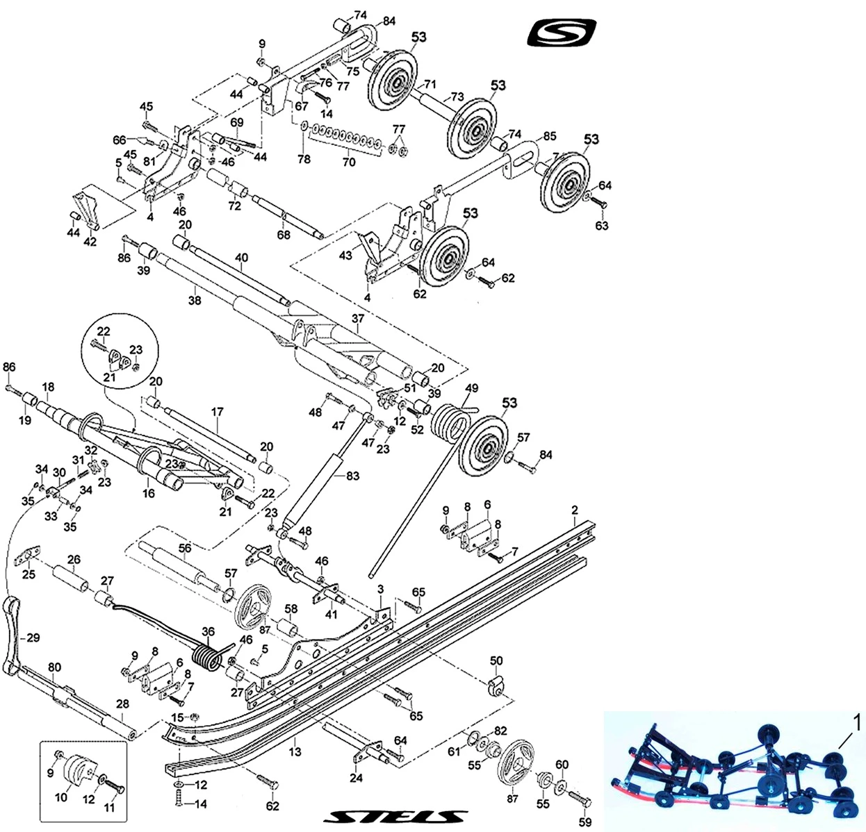 Подвеска задняя в сборе от VIKING S600 / S800 версия 2.0 обновление от 2019 усиленная